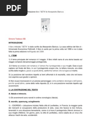 Seta - Alessandro Baricco - Recensioni di QLibri Baricco tesse la sua trama di seta pregiata, avvolge l'amore in un tessuto prezioso e ci consegna una storia estremamente piacevole e intensa. Un amore che sta al suo posto, talmente alto e puro da essere in grado di mettersi da parte, senza sparire, amplificandosi ed espandendosi oltre la vita stessa. Racconta di vite, di viaggi, alla ... Seta di Alessandro Baricco. Lettura online.mp3 by Radio racconti Play Seta di Alessandro Baricco. Lettura online.mp3 by Radio racconti on desktop and mobile. Play over 265 million tracks for free on SoundCloud. il tempo delle farfalle: Seta - Alessandro Baricco - Blogger Seta - Alessandro Baricco Baricco, o lo si ama o lo si odia. Io lo amo. ... Poiché io credo che la lettera sia la parte migliore di tutto il romanzo, la ricopio integralmente. Baricco, in essa, riesce a descrivere con parole, con pensieri, con emozioni, una delle scene più erotiche, ma incredibilmente tenera e piena d'amore, che io abbia ... Baricco, Seta - LetteraTUreStorie - Altervista Alessandro Baricco, Seta Un uomo vive un amore bellissimo ma virtuale per una ragazza. In questo breve romanzo, dallo stile fiabesco, i concetti di fedeltà, tradimento, amore perdono i loro contorni ben definiti… Era il 1861. Flaubert stava finendo Salammbô, l'illuminazione elettrica era ancora un'ipotesi e Abramo Lincoln, dall'altra parte dell'Oceano, stava combattendo una guerra ...