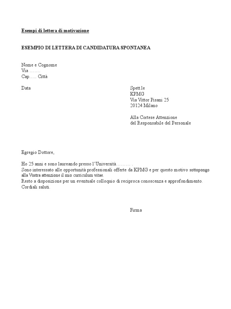 41 lettera di autocandidatura esempio